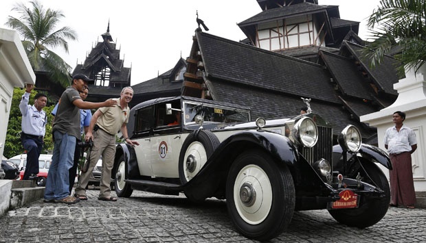 Sebuah mobil klasik Rolls Royce 1932 meninggalkan hotel Kandawgyi Palace saat mengikuti acara "Burma Road Classic" di Yangon, Myanmar, (28/10). Sekitar 20 mobil klasik dari Myanmar dan dari seluruh dunia ikut berpartisipasi dalam turing selama 17 hari. REUTERS/Soe Zeya Tun