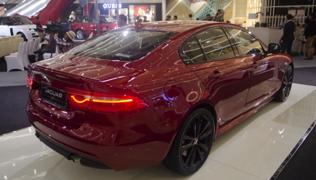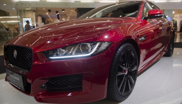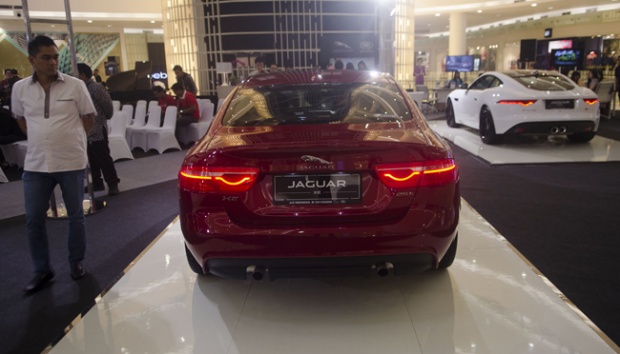 Mobil Jaguar XE saat dipamerkan di Senayan City, Jakarta, 19 Februari 2016. Jaguar XE Prestise dan Jaguar XE R-Sports sama-sama menggunakan mesin 2.000cc yang membedakannya, XE Prestise mampu menyemburkan tenaga 200 Ps, sementara XE R-Sport mampu mengeluarkan tenaga hingga 240 Ps. TEMPO/Wisnu Agung Prasetyo