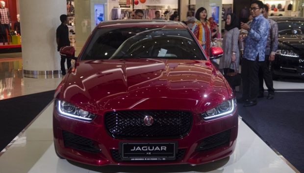 Pengunjung melihat Jaguar XE yang dipamerkan di Senayan City, Jakarta, 19 Februari 2016. Jaguar XE yang mempunyai desain yang mewah ini terdapat dua varian, yakini Jaguar XE Prestise dan Jaguar XE R-Sport. TEMPO/Wisnu Agung Prasetyo