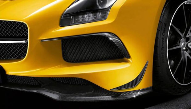 Beberapa bagian dari bodi mobil SLS AMG Black Series, dibalut dengan bahan serat karbon untuk membantu keringanan mobil sport andalan Merces-Benz. Dan bentuk eksterior bodi SLS AMG Black Series ini di rancang secara Sporty agar terlihat gahar dari versi sebelumnya. robbreport.com