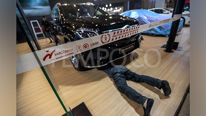 Sejumlah kendaraan dipersiapkan di dalam area pameran kendaraan bermotor Indonesia International Motor Show (IIMS) 2018 di JiExpo Kemayoran, Jakarta, 18 April 2018. Pada 2017 transaksi yang tercatat hanya Rp 3,2 triliun. TEMPO/Tony Hartawan